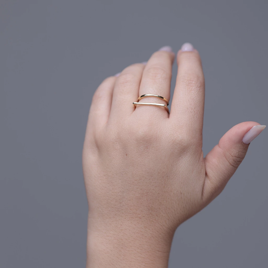 Minimalista, moderno e cheio de personalidade. O ANEL DUO traz duas formas delicadamente contrastantes que se unem em um design único e ajustável, perfeito para todos os estilos e tamanhos.