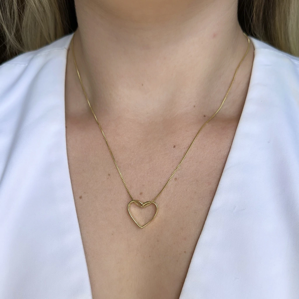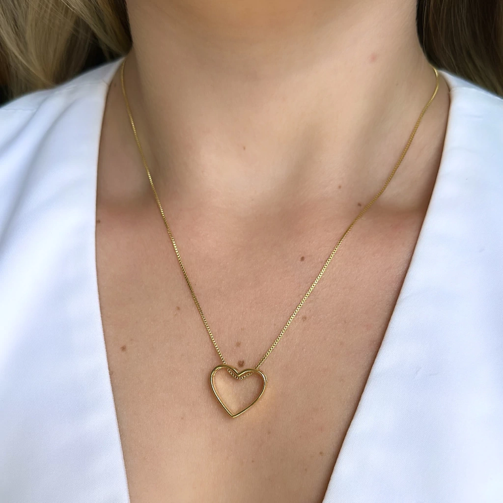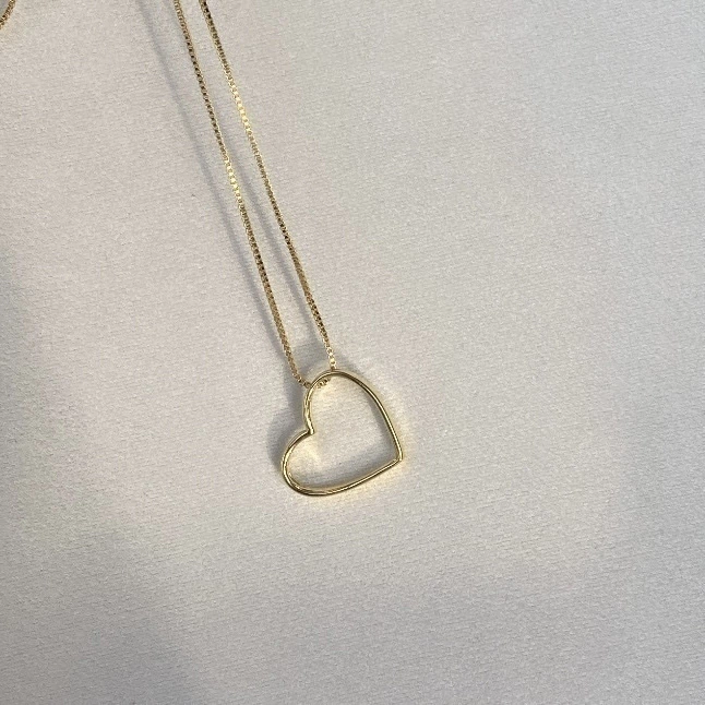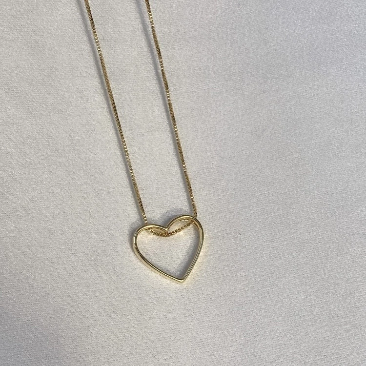 Um símbolo de amor e elegância que complementa qualquer look. Este colar, com seu design vazado e delicado, é ideal para quem deseja expressar sua singularidade com um toque de sofisticação.