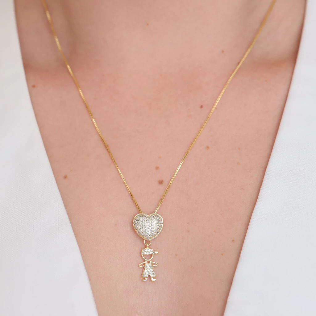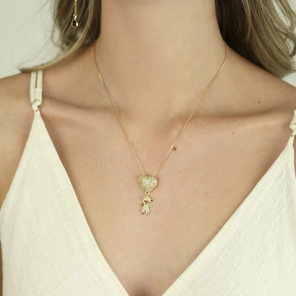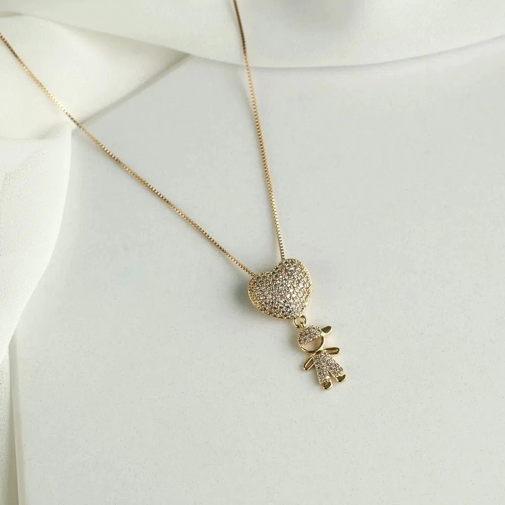Uma peça que simboliza o amor incondicional e a conexão familiar. Com um design delicado, este colar é banhado em ouro 18k e adornado com cristais brilhantes, garantindo que cada detalhe resplandeça.