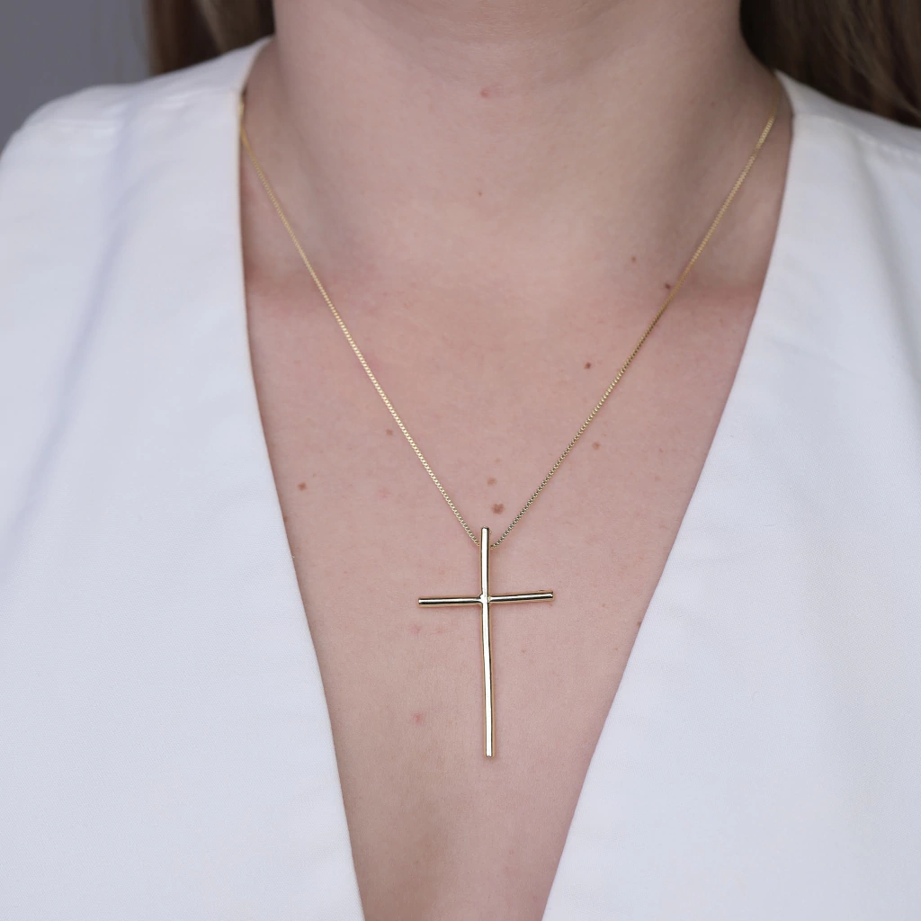 Clássico, atemporal e cheio de significado. O Colar Cruz é uma peça que une fé, estilo e sofisticação. Seu pingente elegante, banhado a ouro 18k, ilumina o colo com um brilho sutil e poderoso. Perfeito para usar sozinho ou como ponto de luz em composições.