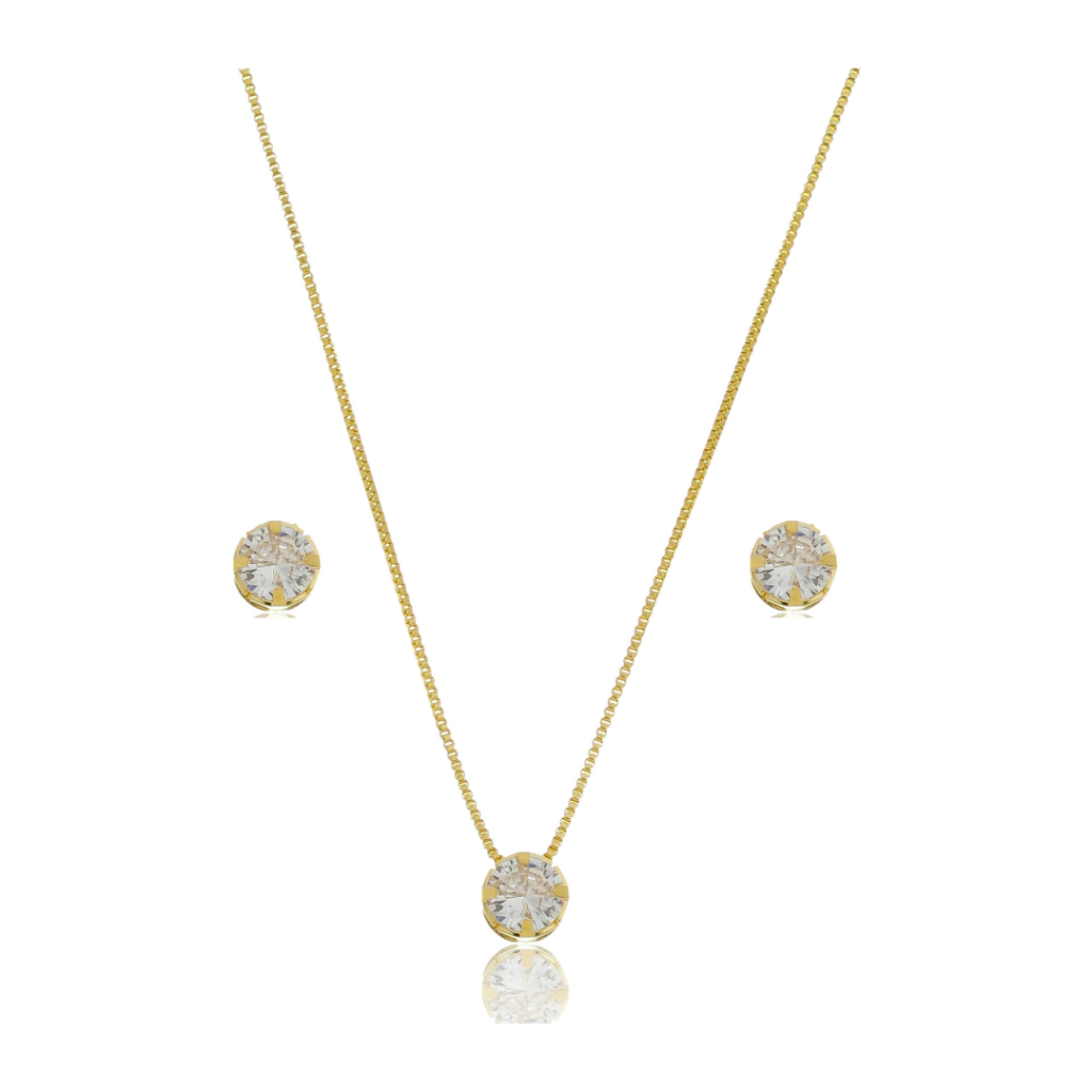 Apresentamos o nosso deslumbrante conjunto de brinco e colar, uma elegante expressão de sofisticação e estilo. Cada peça é adornada com uma deslumbrante zircônia cristal, irradiando um brilho cativante e uma aura de glamour. Banhado em ouro 18k, este conjunto não apenas brilha com uma beleza resplandecente, mas também é gentil com a pele, sendo hipoalergênico, garantindo que você possa desfrutar de sua beleza sem preocupações. Adicione um toque de charme e elegância a qualquer conjunto com este conjunto versátil e encantador.