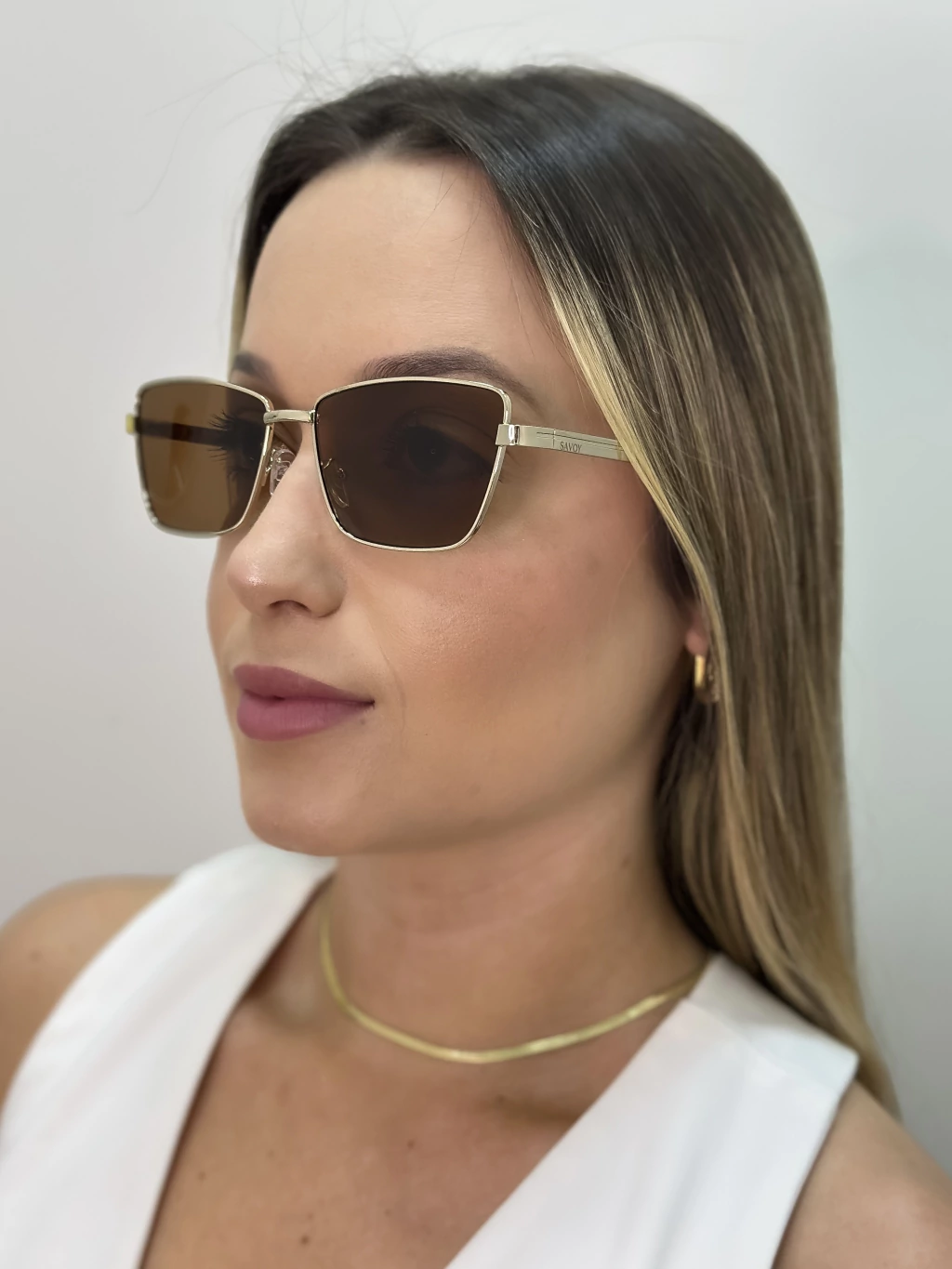 O Ibiza Marrom é puro luxo em forma de óculos! Com lentes em tom marrom elegante e hastes douradas deslumbrantes, ele é a definição perfeita de sofisticação moderna. O contraste entre o marrom quente e o dourado radiante cria um visual marcante, ideal para quem ama um estilo refinado e cheio de personalidade.