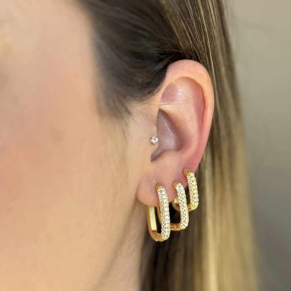 Descubra o Trio de Argolas Quadradas, a combinação perfeita de estilo e sofisticação. Com um design moderno e minimalista, estas argolas são ideais para compor looks elegantes em qualquer ocasião.